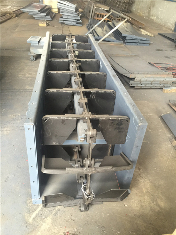 2、埋刮板輸送機鏈條能自動張緊,可保證鏈條在長時間內始終處于適度張緊狀態下運行,省去必須及時而頻繁的緊張操作。板式給料機